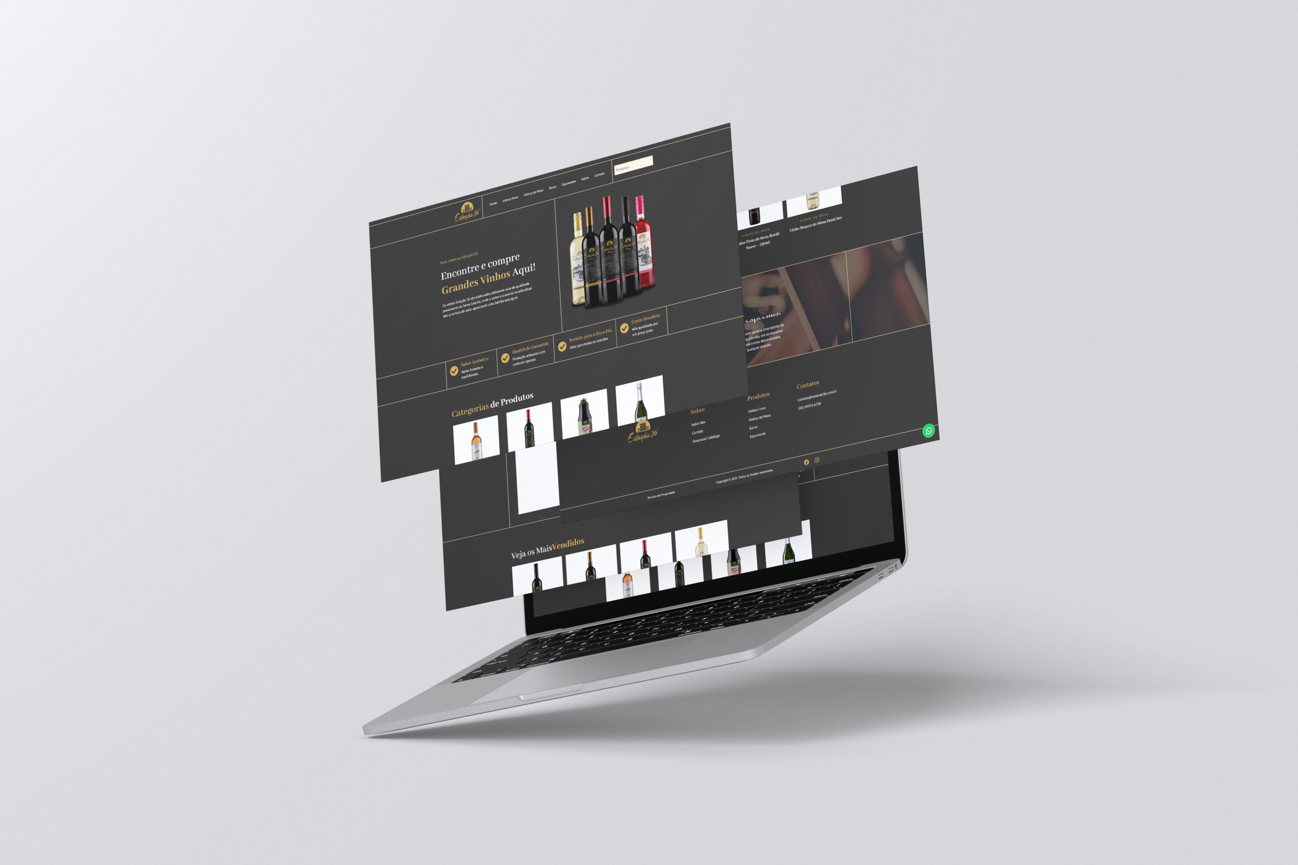 Desenvolvimento do site da Estação 36 Vinhos, com foco em identidade visual elegante, navegação intuitiva e valorização do portfólio de vinhos, fortalecendo a presença digital da marca e a experiência do cliente.