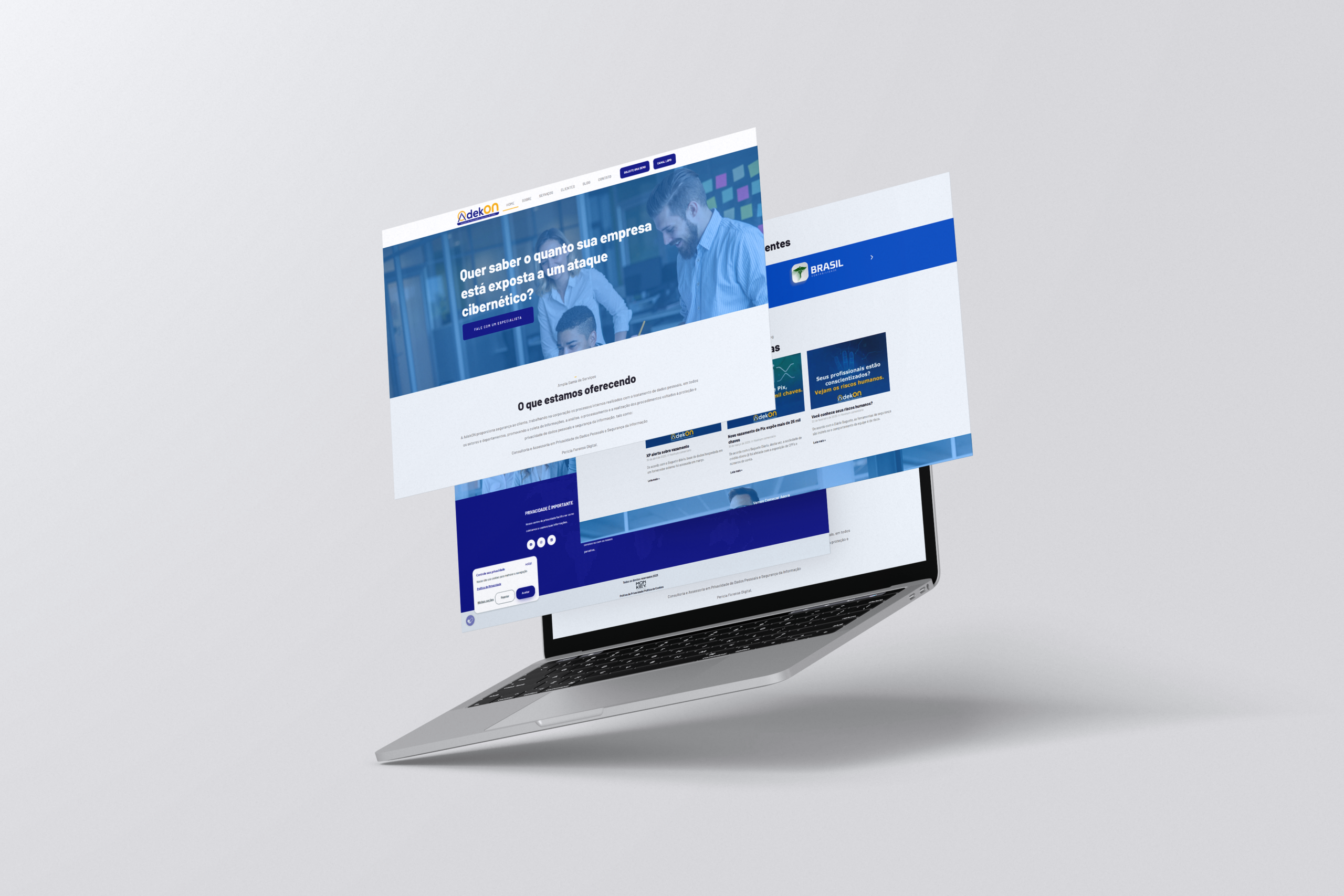 Desenvolvimento do site da Adekon Cibersegurança, com foco em autoridade, confiança e comunicação clara dos serviços, destacando soluções em segurança digital, proteção de dados e prevenção de riscos para empresas.