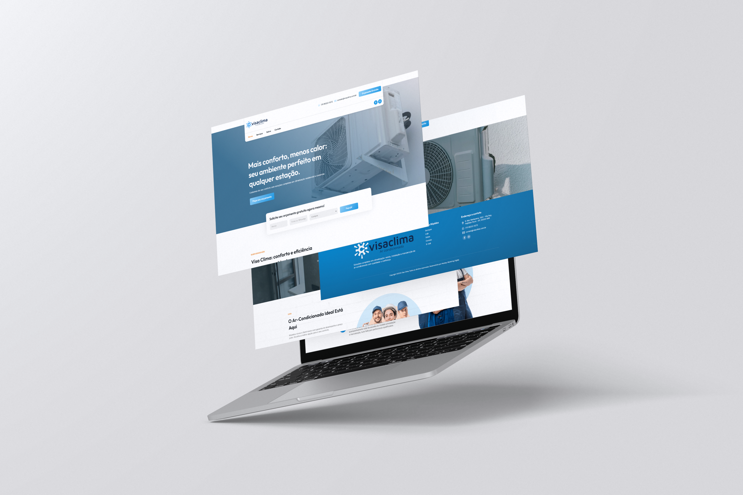 Desenvolvimento do site da VisaClima Ar Condicionado, com foco em SEO local, performance e conversão de leads, destacando os serviços de instalação e manutenção para aumentar a visibilidade no Google e gerar mais contatos qualificados.